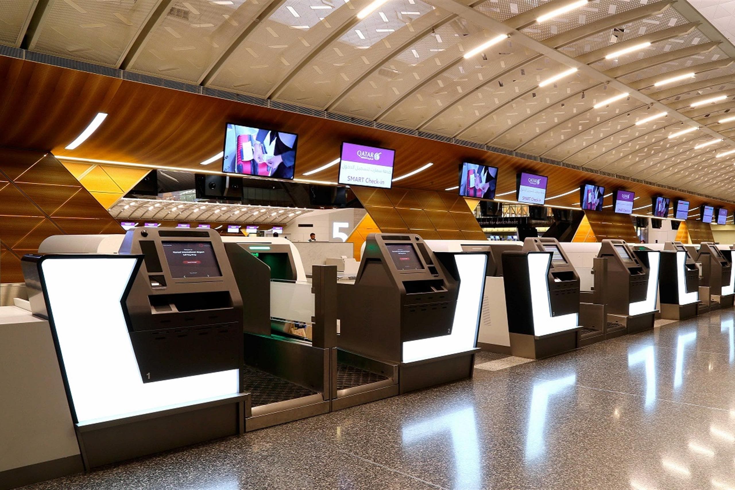 Qatar’s 5-star airport has implemented self-service check-in kiosks and bag drops to provide a seamless and efficient customer experience